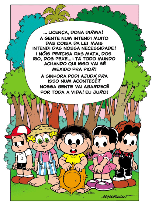 Nesta semana, as atenções estão voltadas para o DOU, que deve trazer até sexta-feira o novo Código Florestal. Campanhas para que a presidente Dilma vete o texto vêm de todos os lugares. Recentemente até Chico Bento, aquele dos gibis de Mauricio de Sousa, se manifestou sobre o assunto: